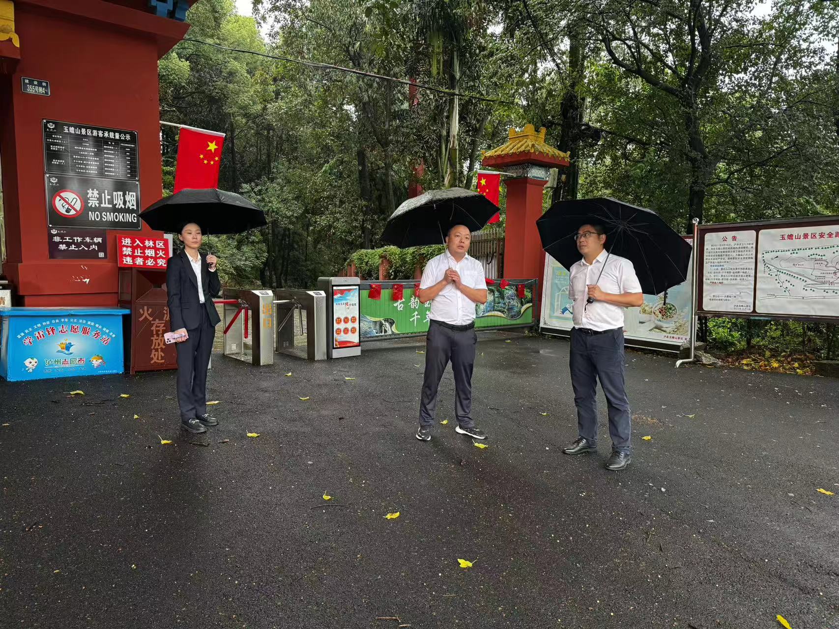 9月30日下午,集團(tuán)總經(jīng)理趙剛到玉蟾山景區(qū)開展國(guó)慶節(jié)前安全檢查工作,并強(qiáng)調(diào),在森林防滅火和防地質(zhì)災(zāi)害工作常態(tài)化開展的前提下,要根據(jù)當(dāng)前季節(jié)性及時(shí)間節(jié)點(diǎn),突出重點(diǎn)問(wèn)題,做好景區(qū)假日期間人流量疏導(dǎo),保障游客出行安全。