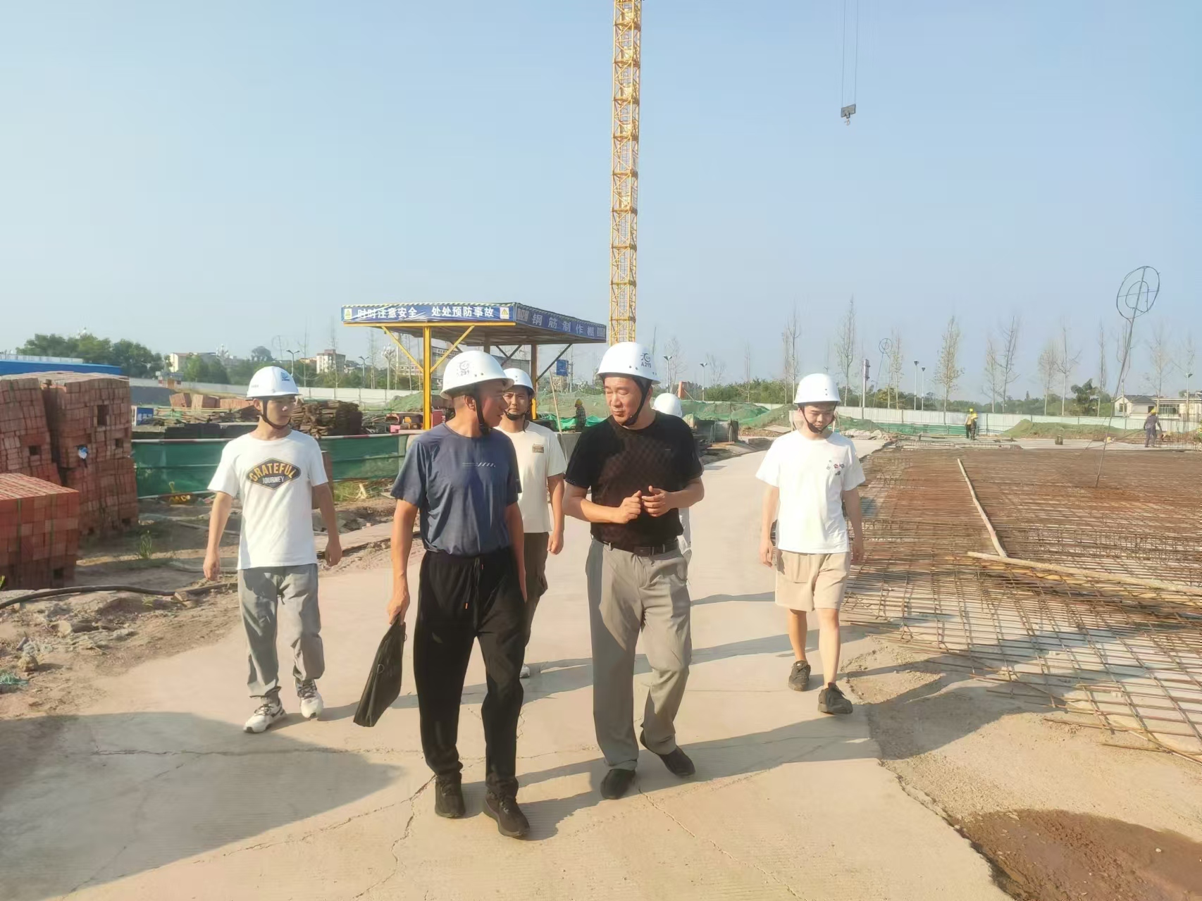 10月5日,集團(tuán)公司副總經(jīng)理劉剛到匯興·東岸項(xiàng)目、清溪社區(qū)鄰里中心項(xiàng)目、高鐵樞紐項(xiàng)目督查節(jié)假日期間安全文明施工及現(xiàn)場(chǎng)值班值守情況,要求管理人員必須嚴(yán)格值班值守,嚴(yán)格管控工程質(zhì)量、進(jìn)度,抓好現(xiàn)場(chǎng)安全文明施工,確保假日期間的安全穩(wěn)定工作。